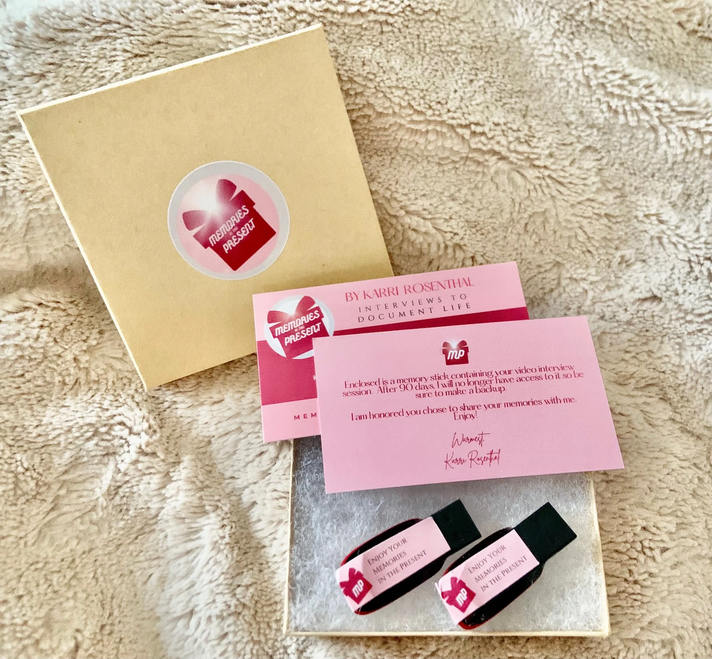 Memories In the Present offers legacy video interview sessions to document your stories or the stories of those most important to you. Each in-person or Zoom memoire session is designed to your specifications by Karri Offstein Rosenthal, host of the Chart-Topping Held:A Podcast Mini-Series. The topics covered, the questions, and the interview environment are customized to create an enjoyable, comfortable, and meaningful experience to help complete your family tree. These interviews are the ideal gift for anniversaries, big birthdays, baby showers, graduations, and other life events!